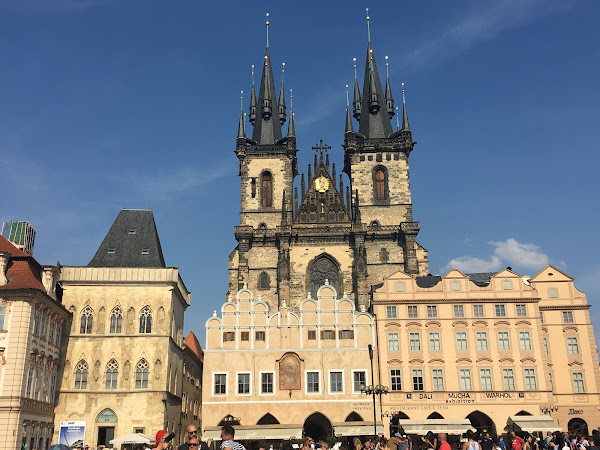 En la plaza de la ciudad vieja encontramos la iglesia de Nuestra Señora de Tyn, con sus pináculos infinitos que se ven desde cualquier punto de la ciudad.