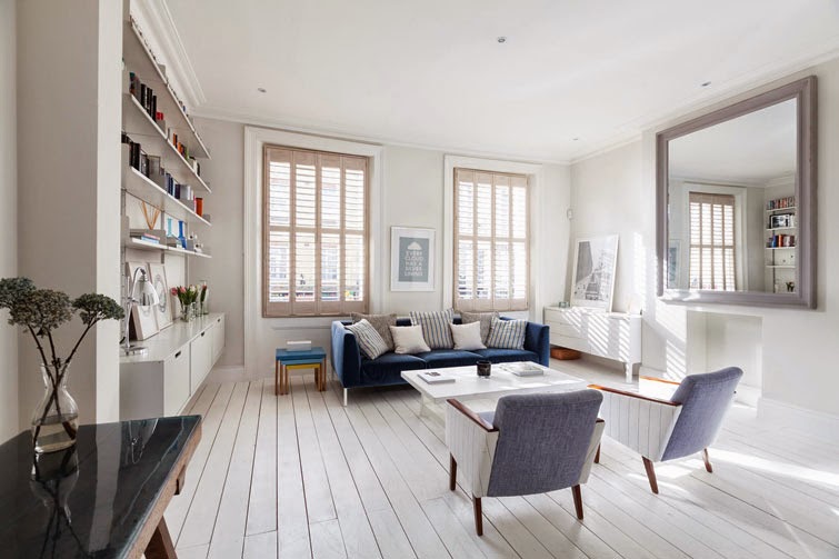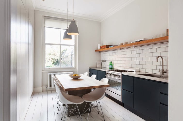 Buenos días! Lo cierto es que tengo pocas fotos para publicar en el blog de este fantástico dúplex, pero me ha gustado tanto, y me parece tan inspirador, que no he querido dejar de compartirlo con vosotros. Como os digo, esta vivienda (con pocos espacios, pero bien amplios) tiene dos plantas. La inferior, donde está situada la entrada, consta de una zona amplia de estar y una cocina preciosa, perfectamente comunicada y con gran espacio de trabajo. Lugar para recibir, estar y hacer vida cotidiana.