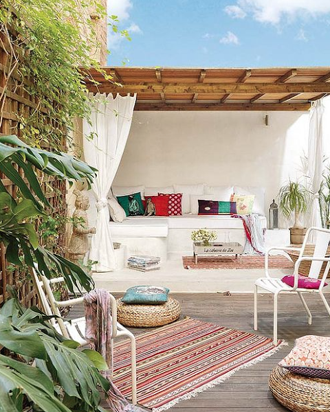 La verdad es real, cada invierno le dejamos de prestar atención y hay veces que se acumulan cosas, yo tengo dos en una plantas (que si las cuido) y en la otra la barbacoa donde nos comemos unos ricos asaditos, pero llega el verano y les agregamos color y luces..... pero éste año no puedo con las PALOMAS me tienen loca !!!! parece una guerra como me dejan la orilla de las paredes buahhhhhh y me he puesto a limpiar a full pero vuelven al ataque ..... que puedo hacer ?? Acá va una selección de terrazas súper monas.