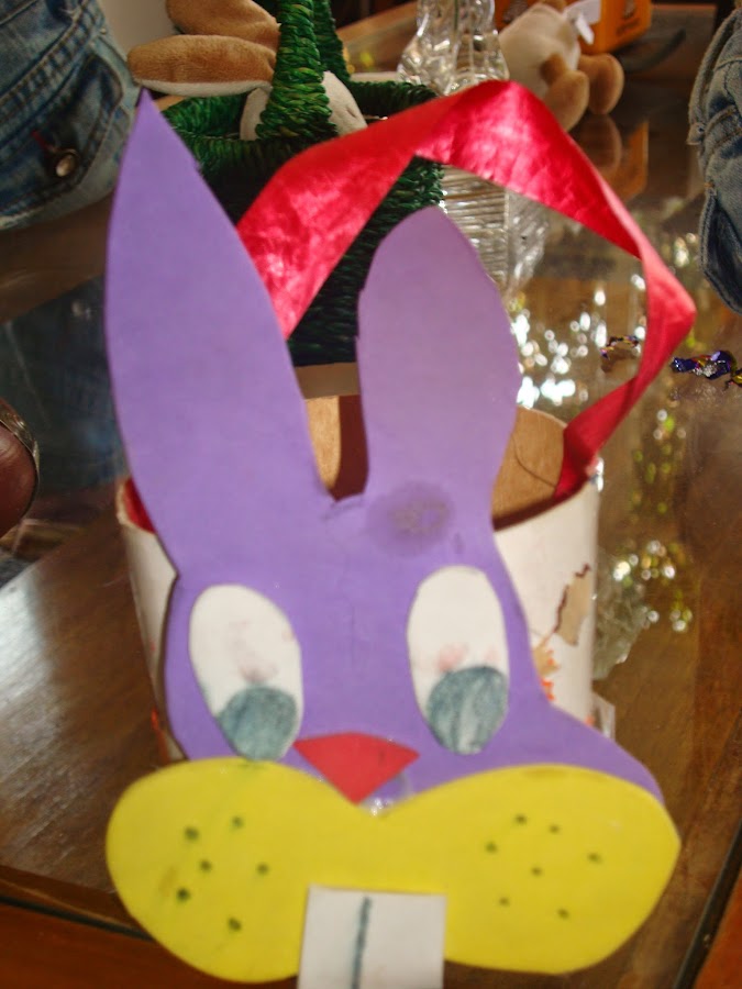 Monserrat, mi hija mayor, hizo este bello conejito-canasto, por allá por 2006 más o menos: