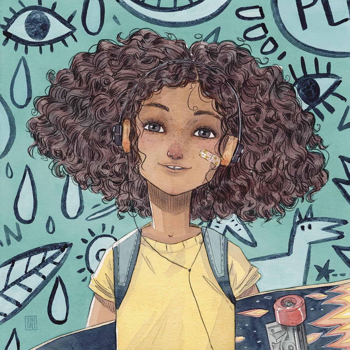 Skater, la niña curly que me conquistado desde que vió la luz en septiembre. Es formato 30x30cm y su precio es de 30€