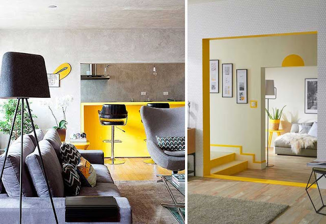 Una última recomendación: elige un punto focal dentro de la estancia hacia donde quieras dirigir la atención. Centra ahí el toque amarillo que destacará por sí solo, ya sea en elementos constructivos de la habitación -techos, paredes, suelos, pilares, escaleras, etc.,- como en un objeto de la misma: un mueble, un asiento auxiliar, una lámpara, una lámina, etc.