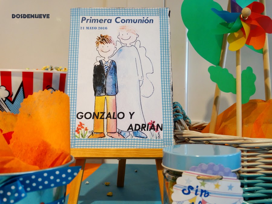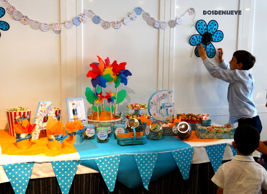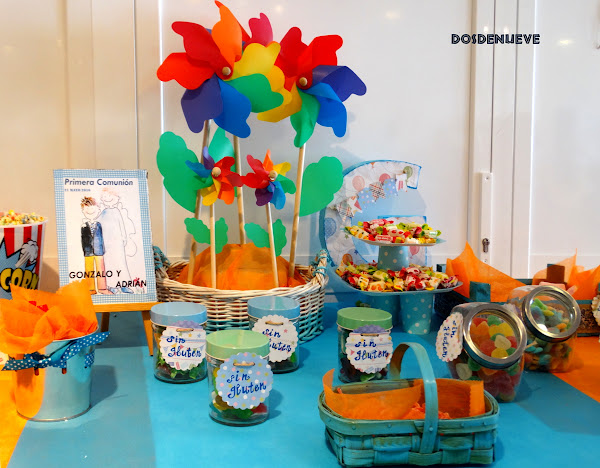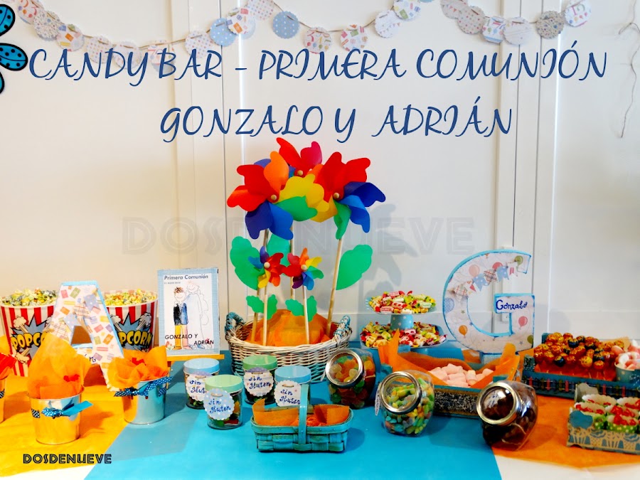 En el mismo restaurante celebraba también su Primera Comunión Adrián, un amigo de Gonzalo, así que incluímos en la mesa dulce detalles relacionados con los dos niños.