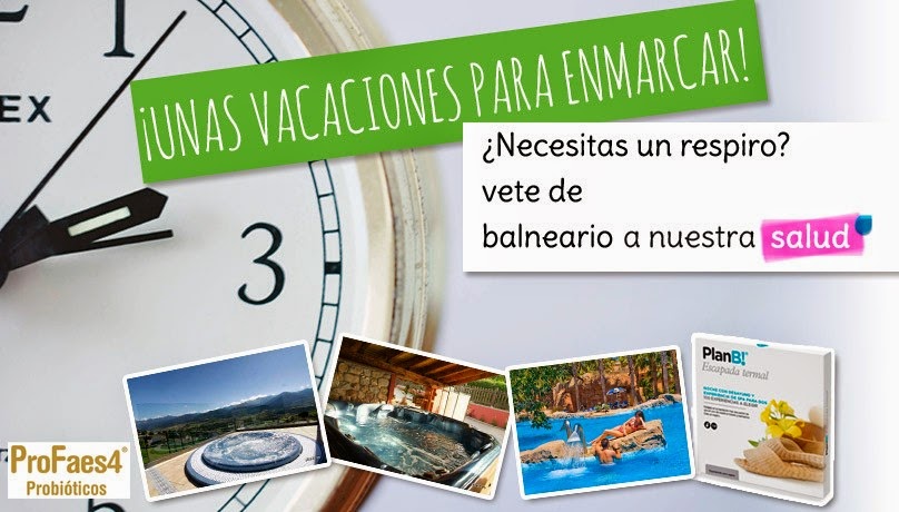 Os llevaréis un envase de ProFaes4 Viajeros, un nuevo probiótico para mantener tu equilibrio intestinal cuando viajes y cambies forzosamente tus hábitos alimentarios. Y de entre las 10 fotos más votadas, el jurado del concurso escogerá a las 3 participaciones ganadoras, que serán premiadas cada una con un Plan B! Escapada termal para dos personas, a consumir en uno de los hoteles adscritos al pack, repartidos por todo el territorio nacional.
