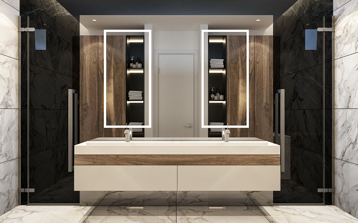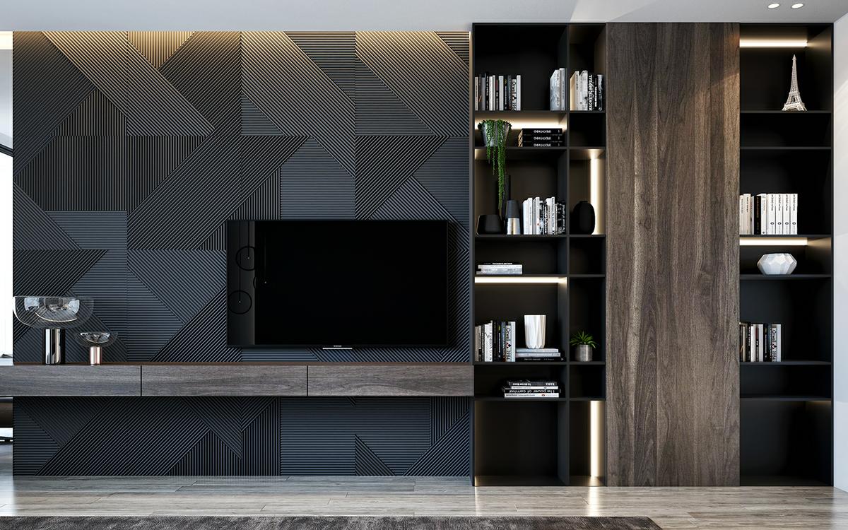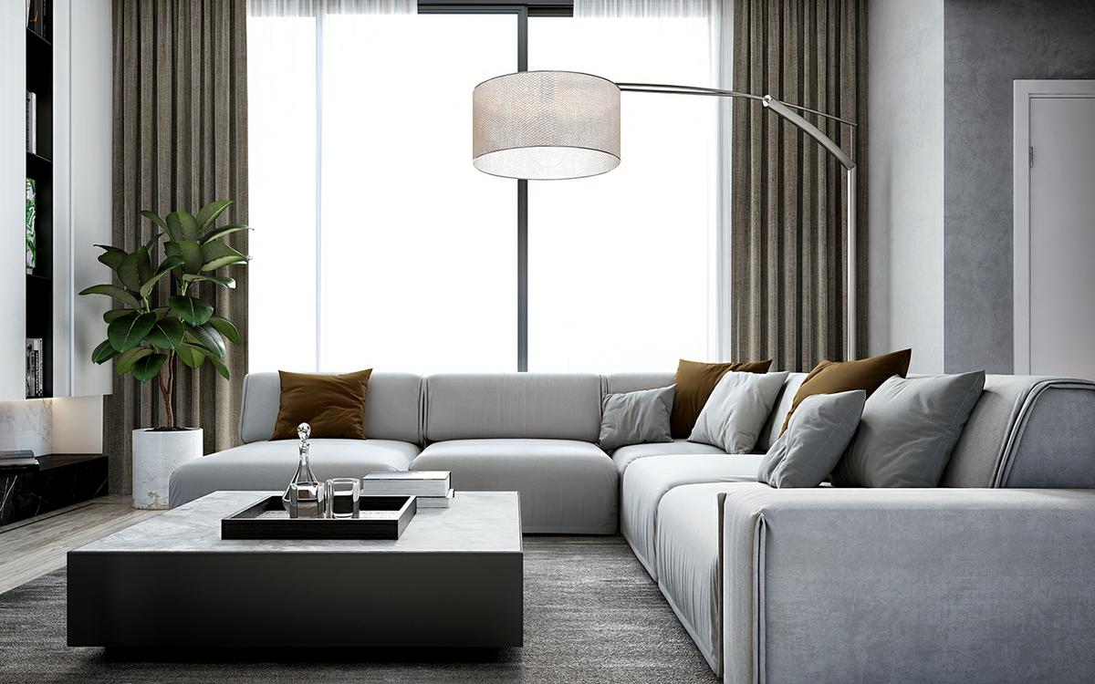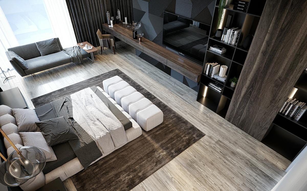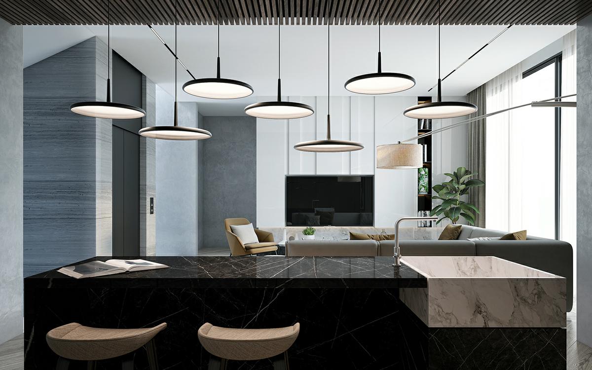 Es importante jugar con el contraste. La combinación de tonos claros con tonos medios y oscuros, es perfecta. Esto, consigue darle un efecto de profundidad a las estancias, al destacar unos elementos sobre el resto. Como podéis comprobar en este proyecto, se juega con las maderas oscura y los grises antracitas, para conseguir volúmenes y diferenciar estancias. El uso de metales como el acero o el latón o el bronce, utilizado convenientemente en lámparas y elementos decorativos, dan un aspecto brillante, con destellos de luz que aportan más luminosidad a las estancias.