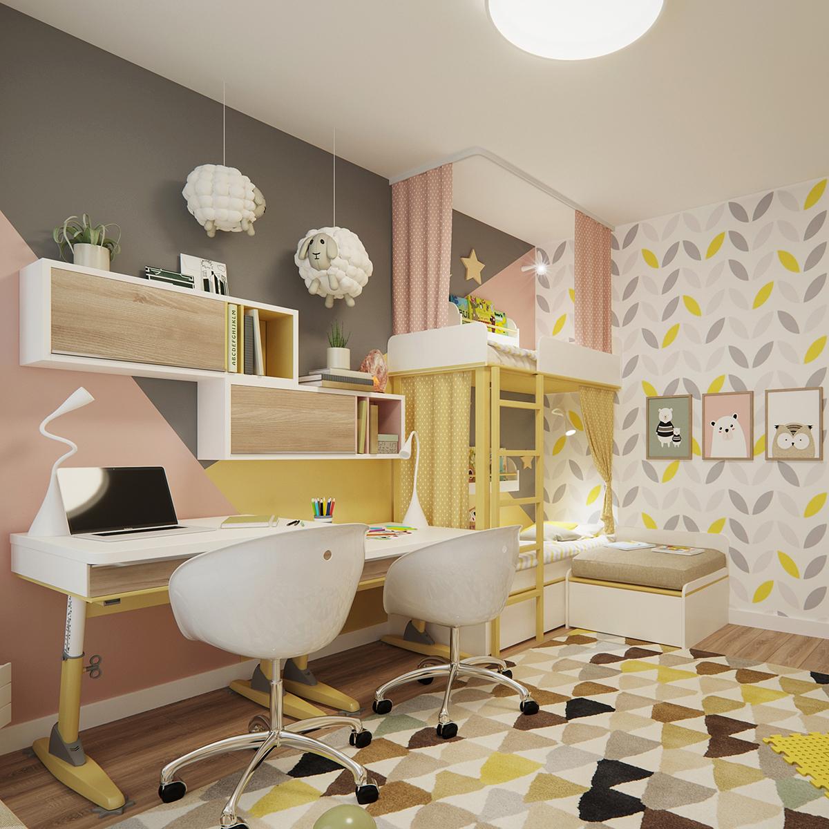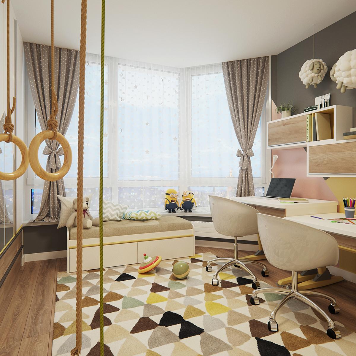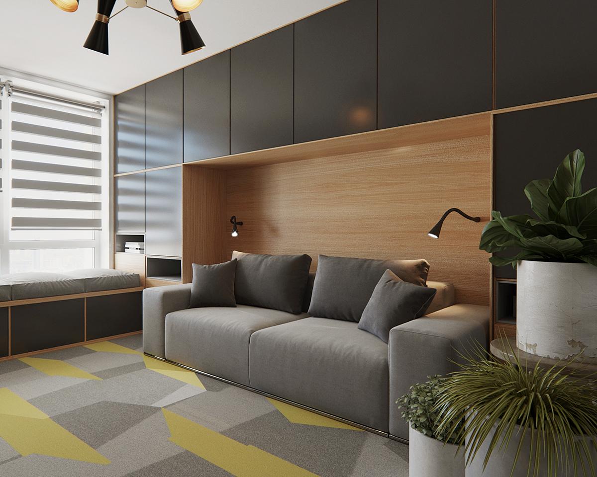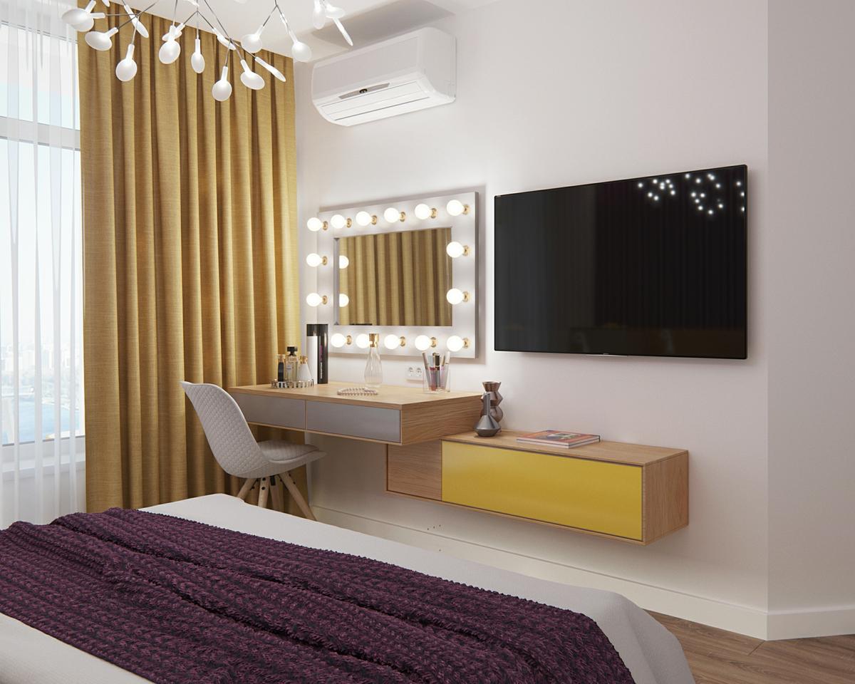 Y hablar de color es visitar los dormitorios. Los acentos morados en el dormitorio principal son bastante decadentes. Y si el color púrpura no era lo suficientemente real, el glamuroso diseño de espejo teatral, agrega aún más estilo. La lámpara de techo creativa y de muchos puntos, difunde la luz para un brillo vespertino muy favorecedor. El diseño de lamas de madera violeta sobre la cama es, a la vez, una característica de diseño y brinda otro espacio para ocultar la iluminación empotrada. Es un proyecto que os invito a que descubráis en imagenes.