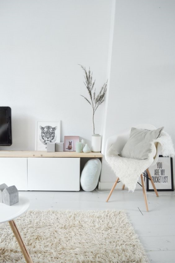 En el salón hemos comenzado a cambiar ya el mueble de almacenaje, simplificando los módulos besta de Ikea, La idea es colgarlo a la pared para dar sensación de amplitud. Además estamos esperando que nos llegue un precioso armario marroquí tallado a mano que tendremos disponible en la Shop durante la próxima colección.
