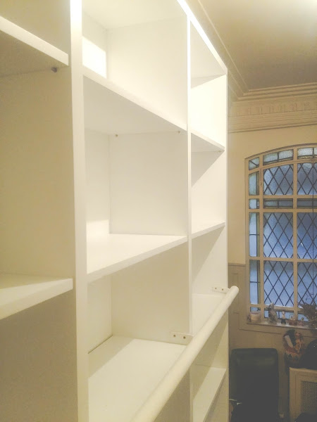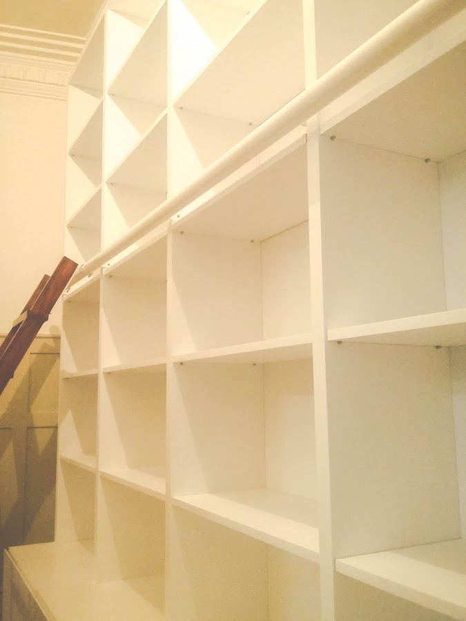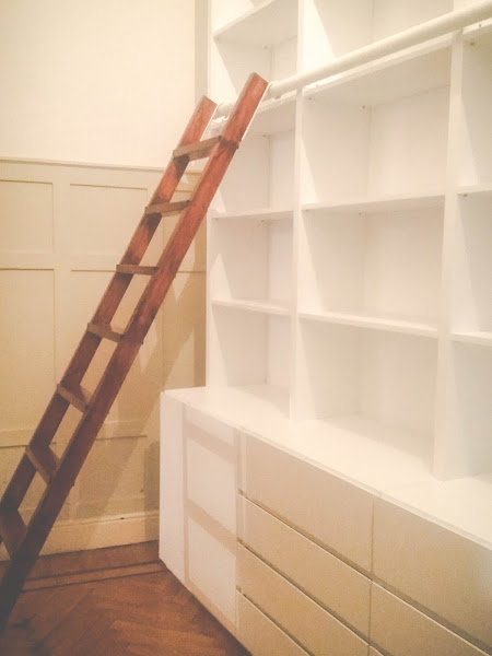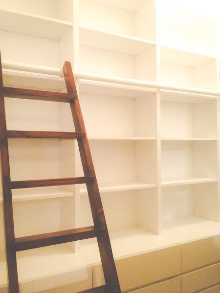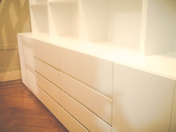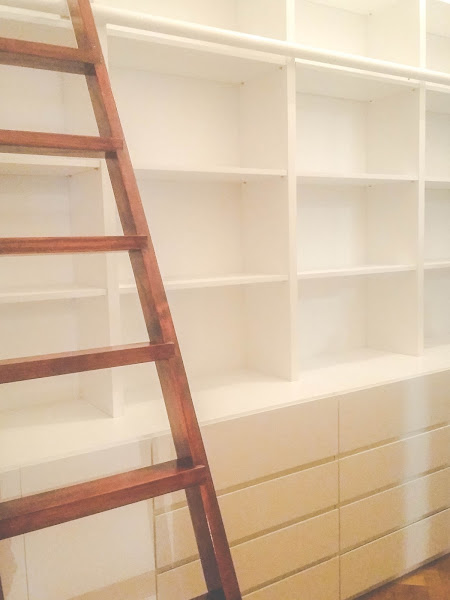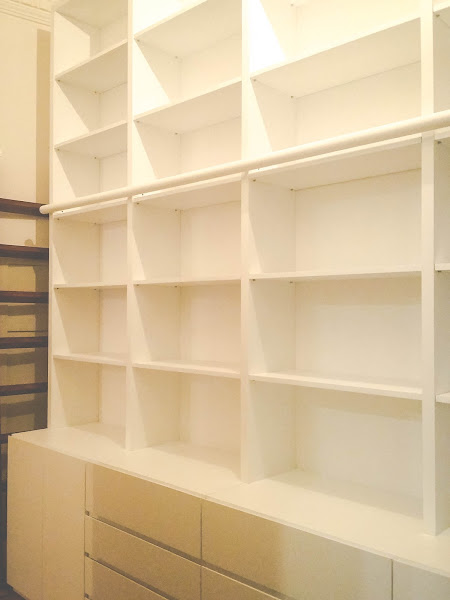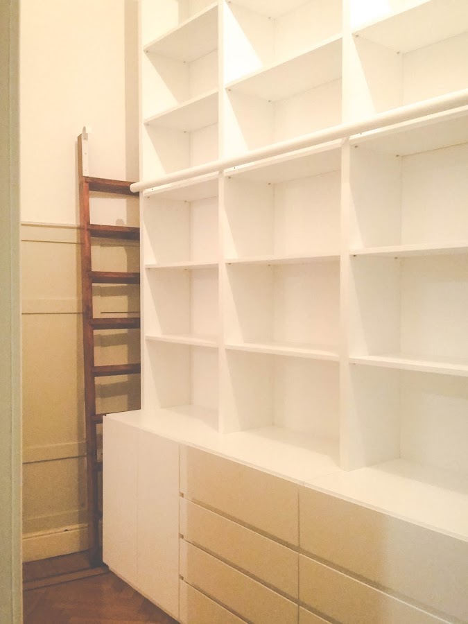 * Se diseñó, construyó e instaló biblioteca a medida, en MDF, con acabado poliuretánico blanco, de generosas dimensiones (3 metros de longitud x 3 metros de altura).