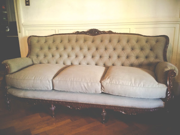 * Se restauró juego de sillones antiguos, colocando relleno nuevo, cambiando cinchas, encolando y lustrando. Se cambió el género anterior por una lona lavada de color neutro (DE LEVIE).