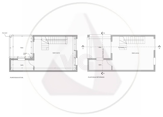 Ubicado bajo el dormitorio de la planta alta, se trata de un espacio abierto con solera original más baja que la del resto de la vivienda. Cerramos el espacio y subimos el nivel del suelo para que no existan desniveles.