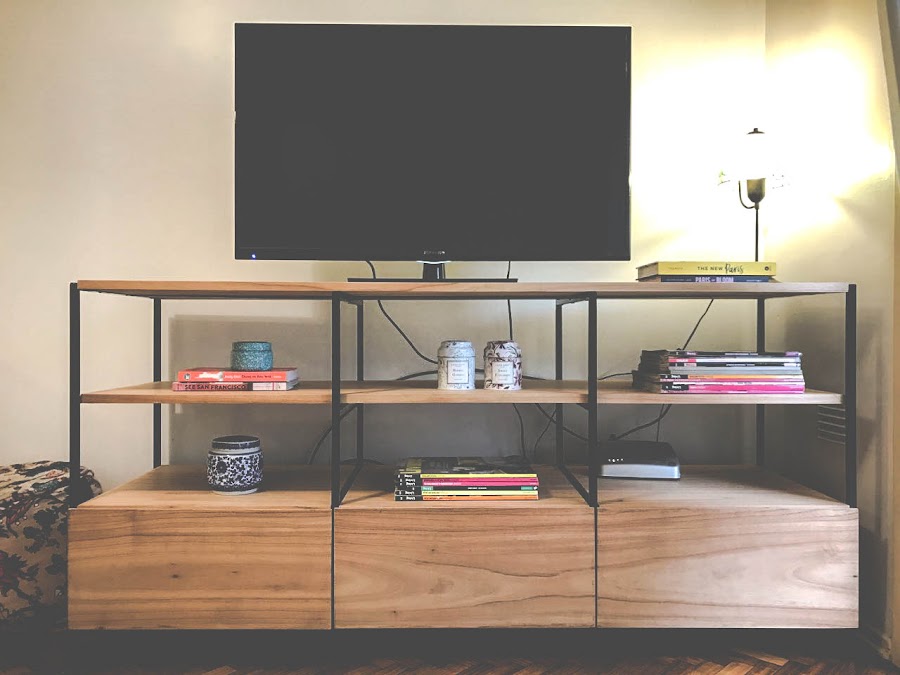 * Mueble TV, en hierro y madera paraíso, realizado totalmente a medida.