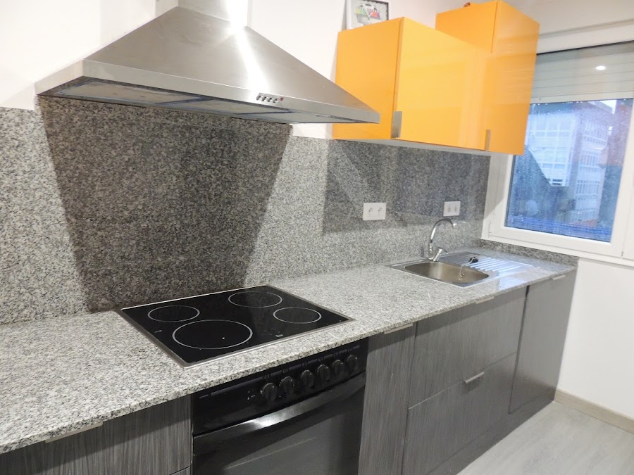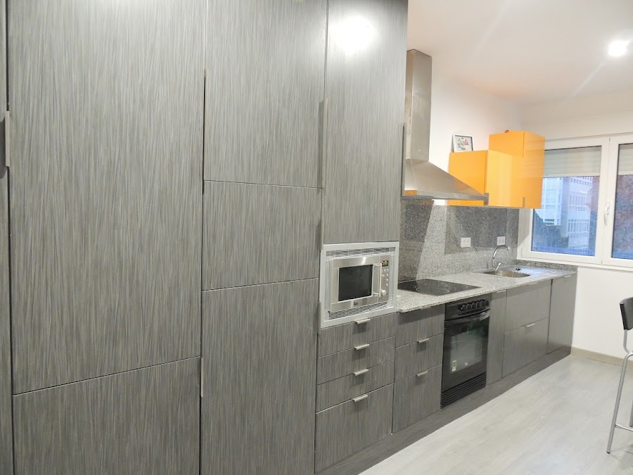 Los muebles de la cocina son sencillos pero muy prácticos. En la gran zona de la izquierda, se esconde un escobero, la zona de lavandería y una pequeña despensa.