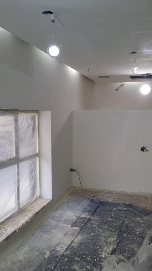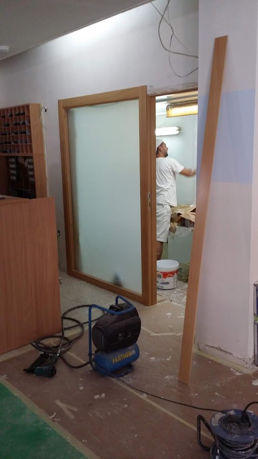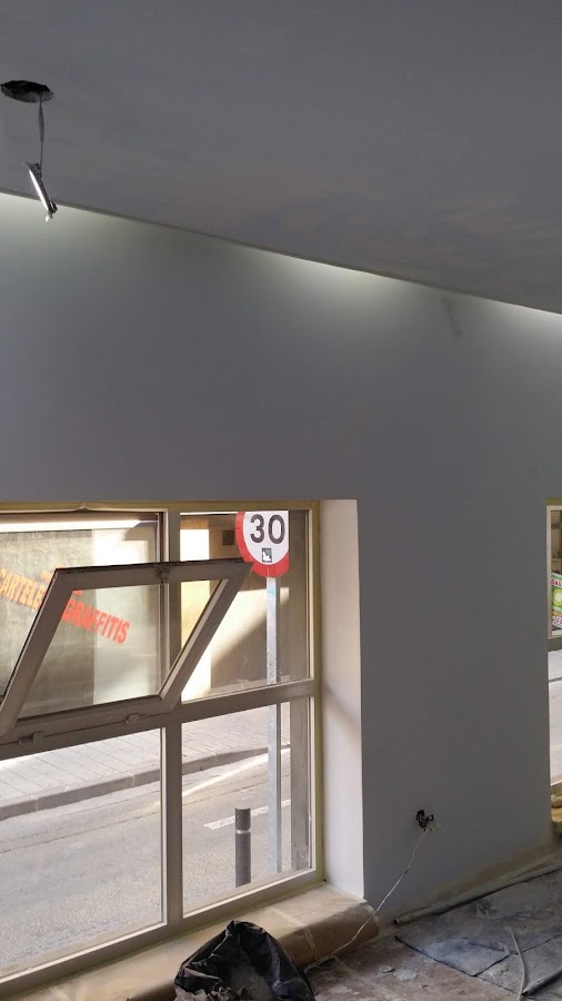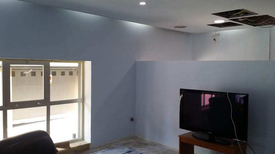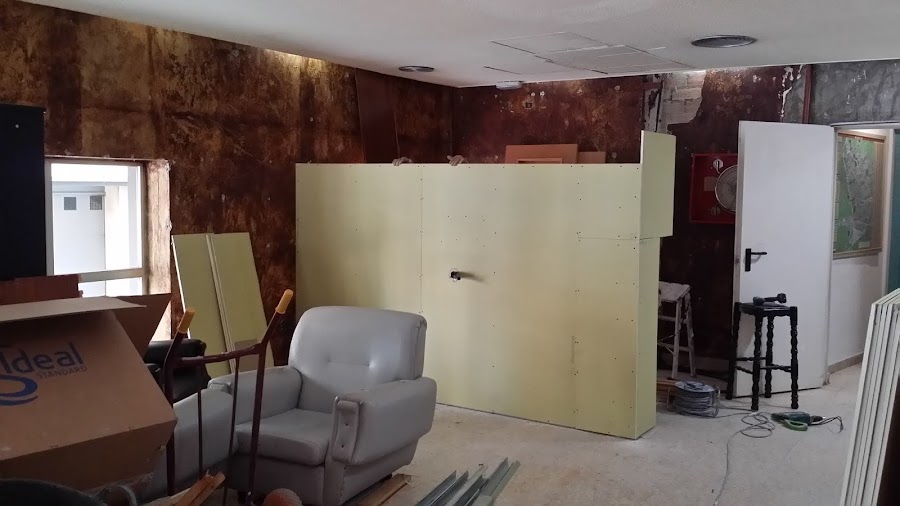 Tabiqueria yeso, dado el uso público se utiliza placa extra dura, con alta resistencia, muy adecuada para estos espacios.