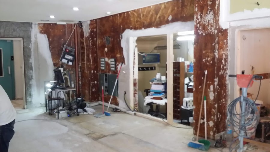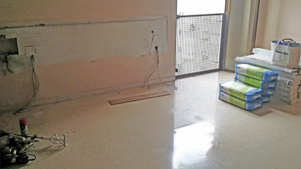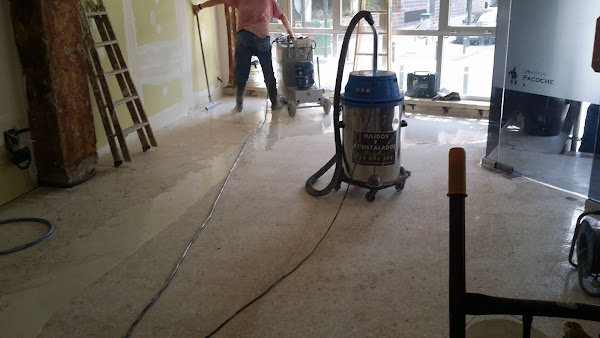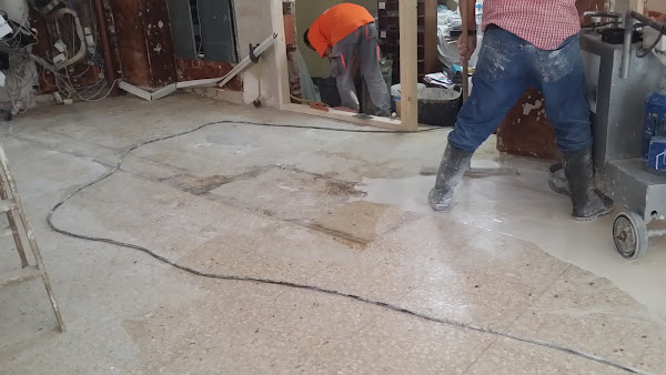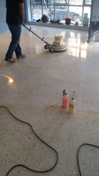 Tras la pintura y previo a la instalación de rodapie se le aplica el abrillantado al pavimento de terrazo.