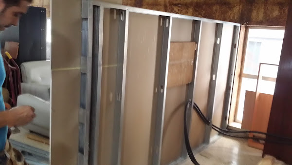 Para reforzar el tabique se fabrica una pilastra que queda oculta en el tabique semi exento.