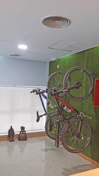 Al fondo y frente al mostrador de recepción se encuentra la zona de consigna y el espacio para las bicicletas