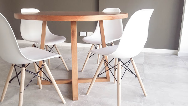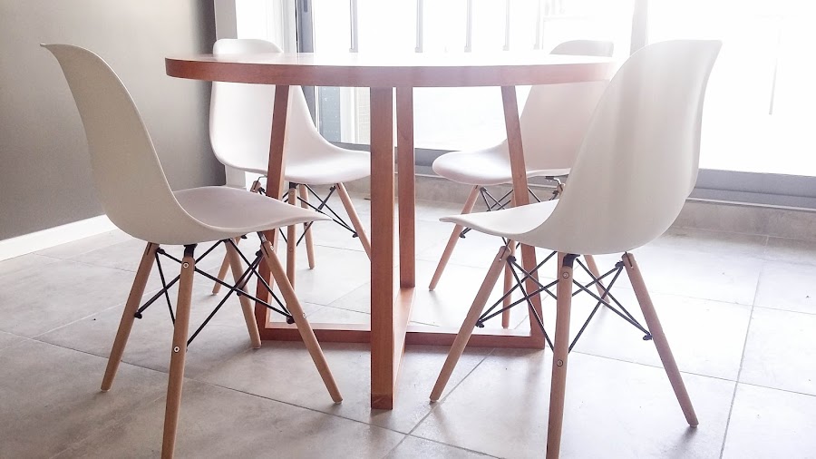 * Se acompañó la mesa de comedor con 4 sillas modelo Eames en color blanco.