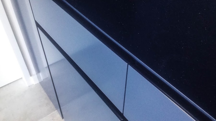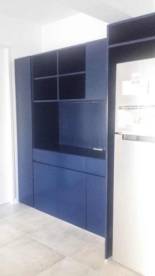 ZONA DE COMEDOR* Se realizó un gran mueble de guardado y contenedor de la heladera, totalmente laqueado en color azul noche.