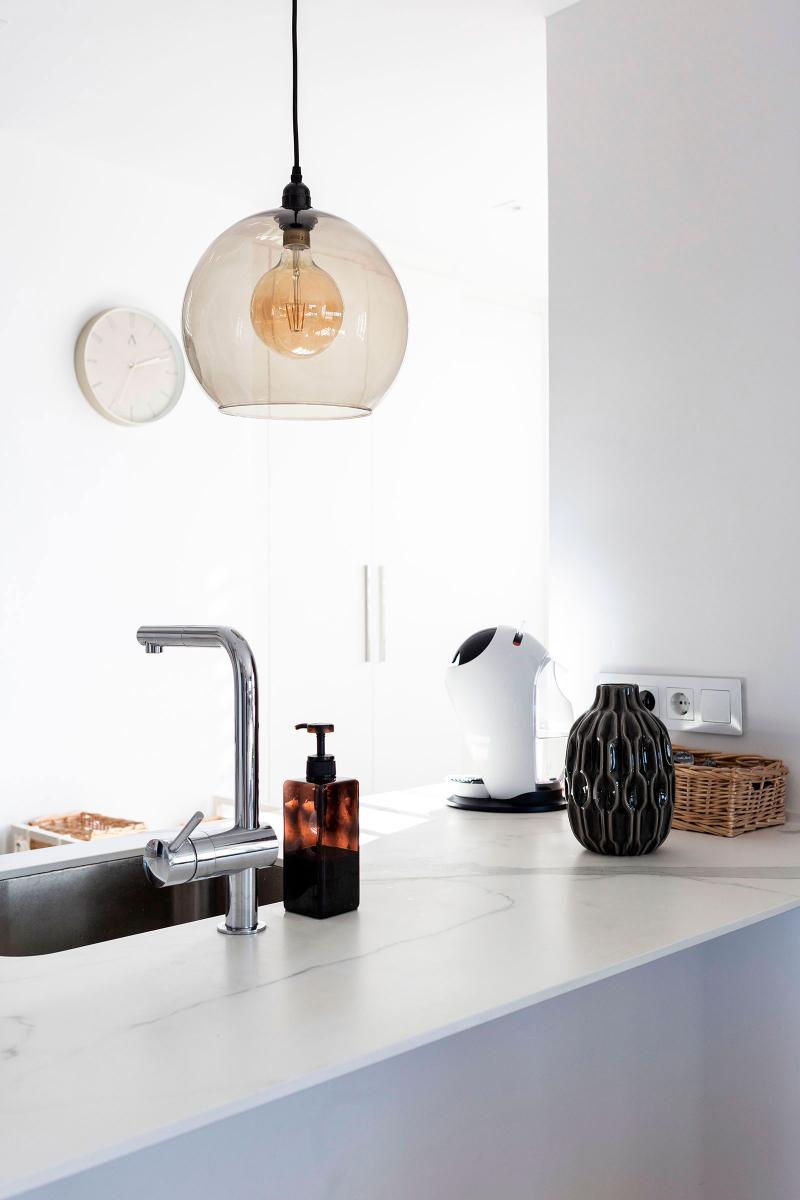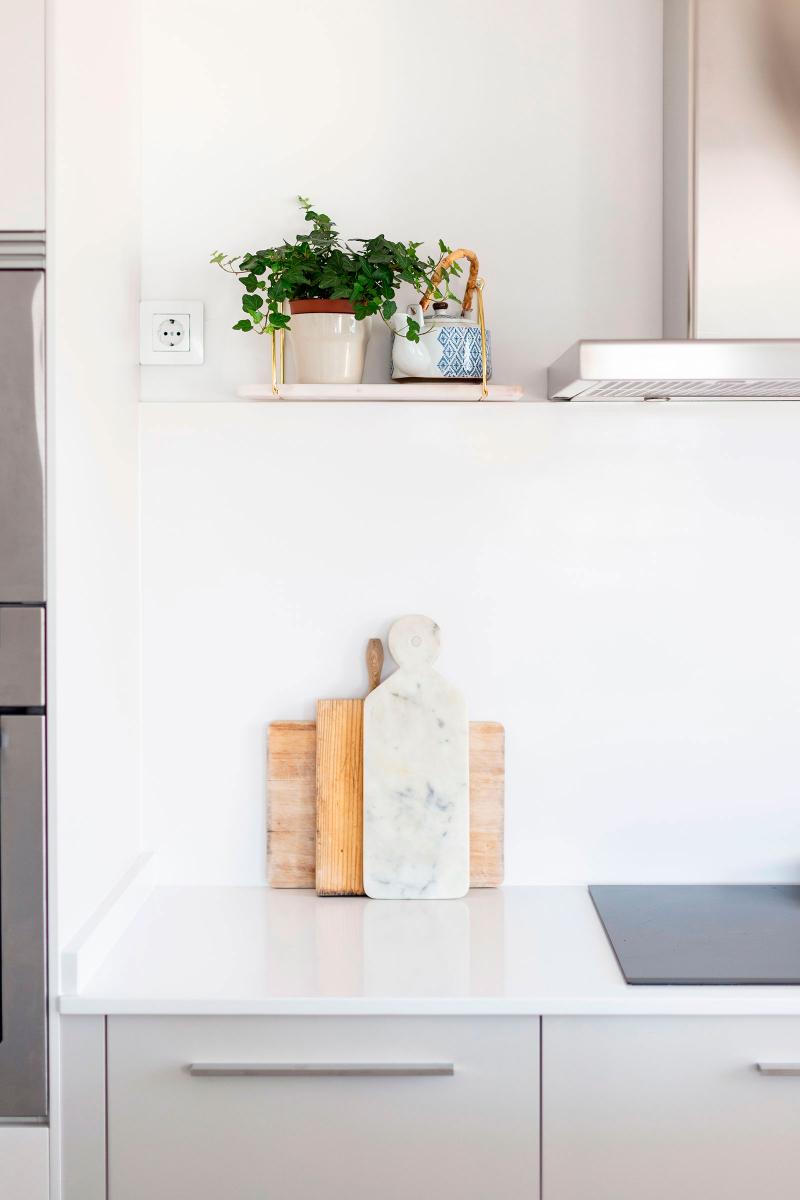 Esta cocina, cuyo aspecto anterior podéis ver más abajo, es un claro ejemplo de transformación. En origen, una cocina pequeña y estrecha, permite ahora que fluyan las personas mucho mejor. Varias personas pueden compartir el espacio simultáneamente incluso realizando distintas tareas. La mayoría de los armarios están en la parte inferior, bajo la isla y muy accesibles, para permitir guardarlo todo cuando no se está usando. Tres ventanas con distinta orientación permiten una ventilación natural constante. La campana es de alta gama para evitar olores… ¡y ruidos! y la zona de estar se ubica de espaldas a la cocina.