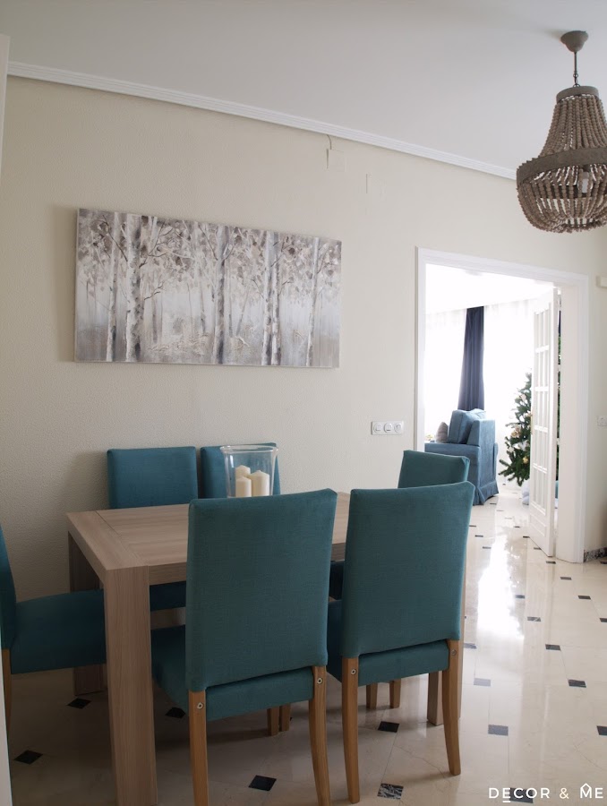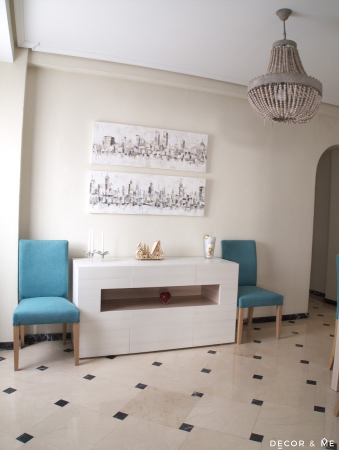 COMEDOR.-Mobiliario:Rimobel/Sillas:Tapizadas a medida/Lámpara: Kenay Home/Lienzos:IXIA/Decoración:IKEA,Leroy Merlin.