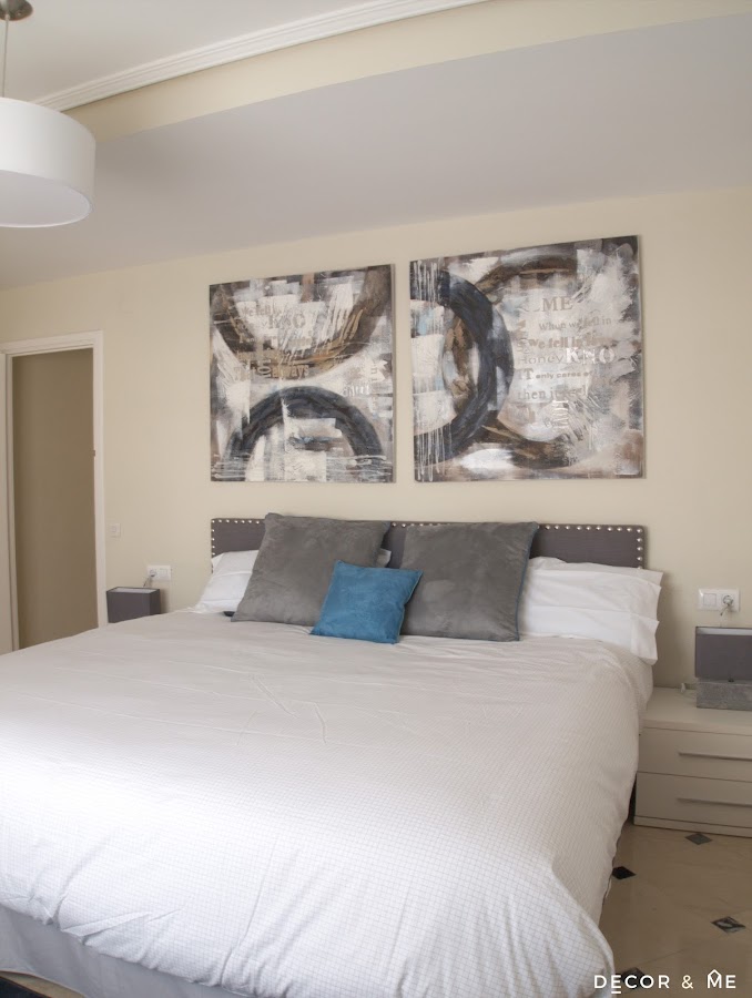 DORMITORIO PRINCIPAL.-Mesillas:Rimobel/Cabecero:Tapicería Rodymo diseño Decor&Me/Alfombra:Benuta/Lámparas mesillas:Leroy Merlin/Lámpara techo:FARO/Lienzos:IXIA/Cortinas:IKEA/Cojines:Leroy Merlin/Ropa de cama:La Redoute,Zara Home, Textura, The White Basics.