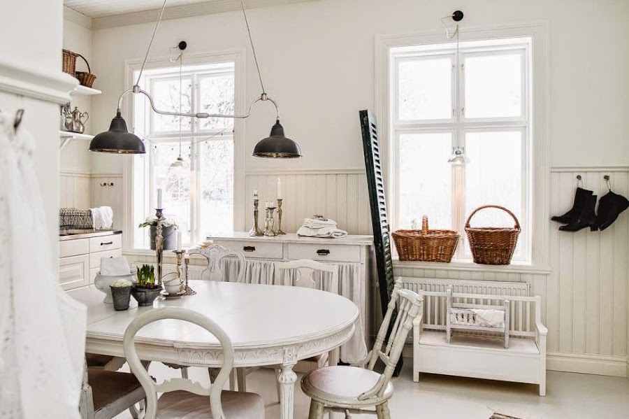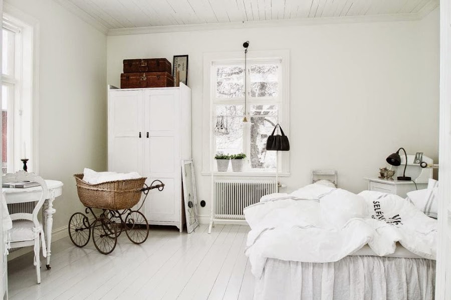 Sin embargo, sería injusto por nuestra parte no fijarnos en las otras inspiraciones que esconde este hogar sueco. Paredes y techos en blanco y un pavimento de madera forman una base neutra para los muebles que la decoran. Una mezcla de piezas rústicas y vintage que consiguen transmitir ese charme tan característico de las casas antiguas. Un baño de luminosidad y detalles por doquier reflejan un hogar fiel a la esencia shabby chic. Ahora solo queda jugar a encontrar una o más ideas interesantes para nuestra casa. Pero eso ya os lo dejo a vosotros.¿De qué os habéis enamorado?