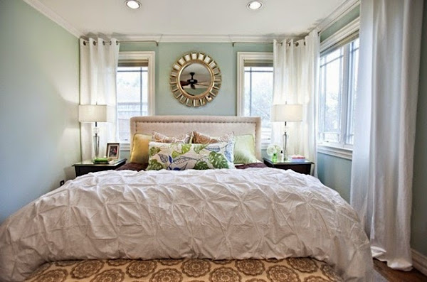 Mi consejo: Cambiar de orientación la cama, y pegarla a la pared de dos ventanas. Seguro que la habitación ganará muchísimo.