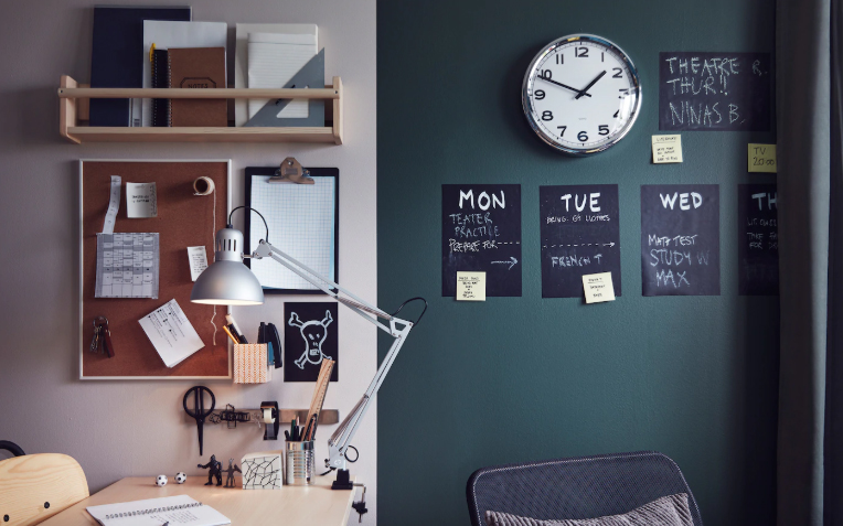 Puede ser buena idea instalar un moodboard o simplemente un corcho para que coloque fotos, dibujos, o la entrada a ese concierto al que fue con la cuadrilla en el que se lo pasó taaan bien... Para nosotras puede que sean tonterías (e incluso muchas veces basura... ups!) pero para ellos y ellas son auténticos tesoros. ¿Porqué no dejarles que decoren su zona de estudio con ellos?