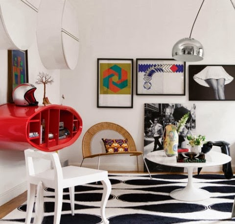 Los muebles y electrodomésticos de siluetas curvilíneas o rectangulares, el plástico como material fundamental y los aparatos electrónicos diseñados al más puro estilo de la época son algunos de los básicos de la decoración.