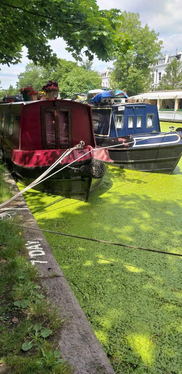 Otra cosa curiosa de Little Venice es que actualmente el río tiene una especie de mantón verde creado por unas algas pequeñitas.
