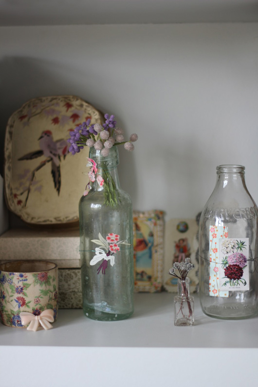 Y ahí estamos nosotras, mariquillas las primeras, quizás no a la hora de mostrar mucho más allá de nuestros intereses y trabajo, pero sí como consumidoras de historias varias... Por lo que nos hemos propuesto un poco de contención: al igual que estas botellas embellecidas con el toque justo de decoupage, queremos centrar nuestro tiempo "instagramero" en cuentas de arte, decoración, por supuesto, manualidades, algo de moda... Aunque, de vez en cuando, sucumbamos a relatos ajenos... Pero sólo por un rato...