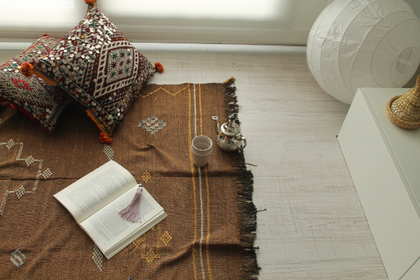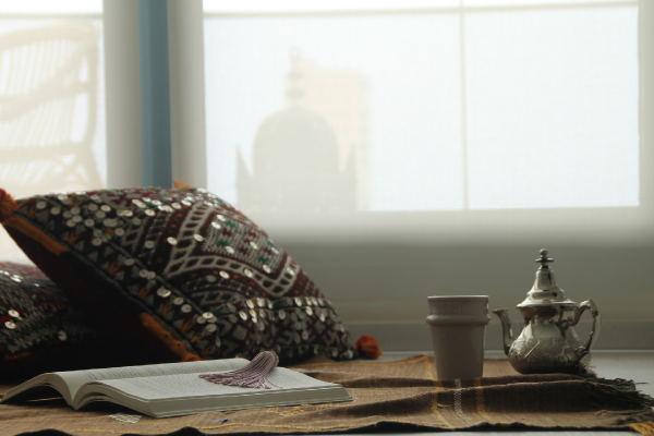 Este mes hemos decidido quedar con todos vosotros en un rincón de lectura, para celebrar juntos el día del libro. Como sabéis, todos los meses quedamos en un lugar de casa distinto para que tengáis pequeñas dosis de inspiración que os sean de utilidad a la hora de decorar vuestro hogar. En esta ocasión no nos hemos querido complicar la vida, nos hemos cogido unos cojines bien mulliditos y un té moruno para tumbarnos en el suelo a leer (después del atrevimiento de los primeros 20 minutos en el suelo, os recomendamos antes colocar una buena colchonetita). Estos días estoy con la lectura de "La puerta de los vientos", una obra que también os recomiendo mucho mucho, porque me están encantando cada uno de sus relatos, escritos por un nutrido grupo de autores marroquíes. Sólo me queda desearos que disfrutéis de la quedada. A leer!!!