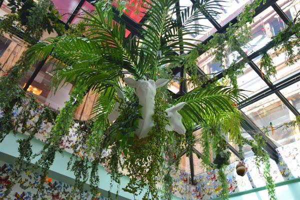 A mí, este espacio me recuerda un poco, al invernadero de la estación de Atocha, mezclado con Alicia en el País de las Maravillas y las estufas del Jardín Botánico de Madrid. Vamos, que bien me montaría yo una fiesta a lo "Sombrerero Loco"