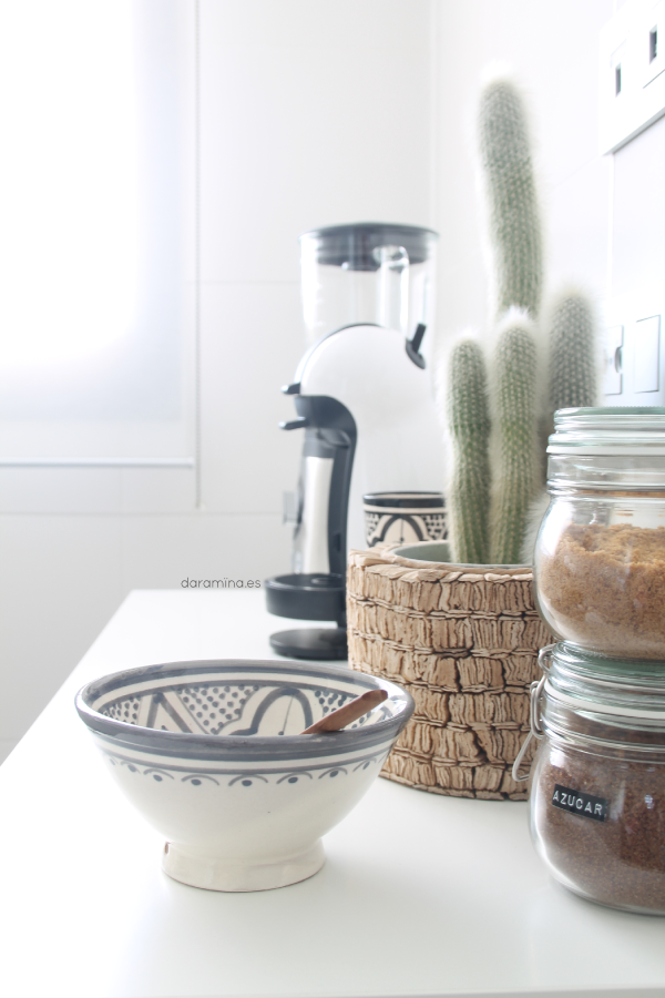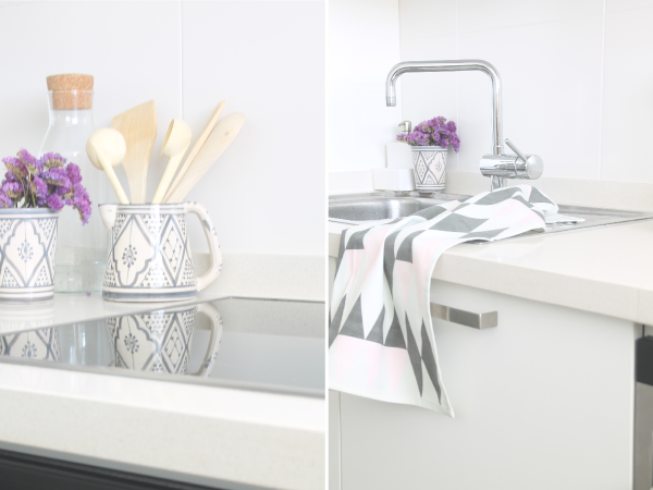 Este mes de junio llega a su fin, caluroso como el que más, pero sin olvidarse de su cita con el #quedamosen, que en esta ocasión celebramos en la cocina. Aunque con la llegada del calor todos reducimos nuestro tiempo en la cocina, no podemos renunciar a la preparación de ensaladas frescas, batidos refrescantes y todo tipo de alimento que se nos ocurra que tenga el frío como punto de partida. En esta ocasión hemos querido mostraros nuestra propia cocina, la cuál poco a poco se está llenando de utensilios de cocina caracterizados por lo natural y artesanal en su elaboración. Esta tarea se complica en un espacio tan marcadamente moderno e industrial, pero siempre se encuentra un hueco gracias a la paleta de blancos que reina en nuestra cocina.