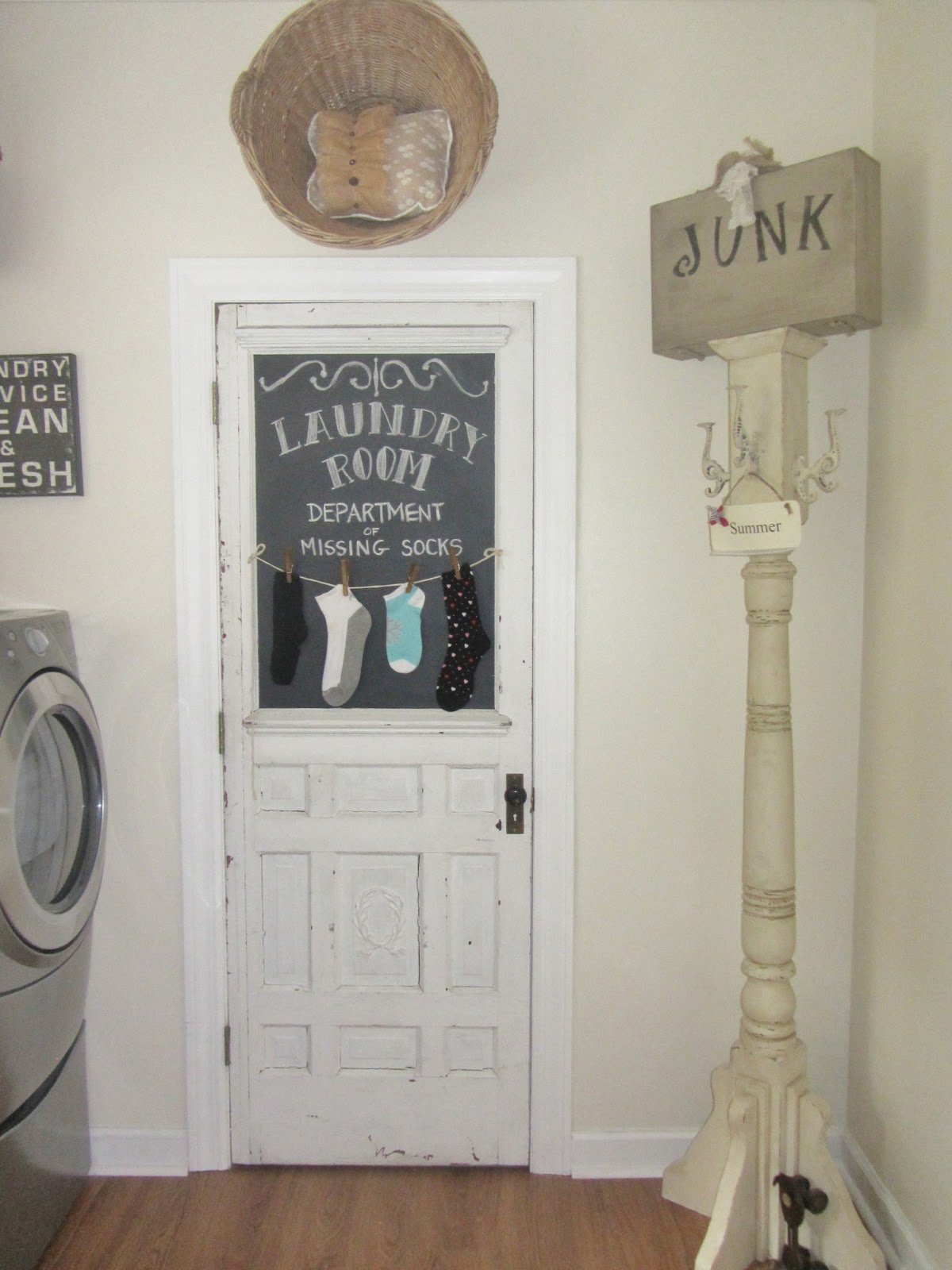 No ha sido un tema fácil de encontrar y yo quería algo que se identificara un poco conmigo, así que al ver este cuarto de lavado lleno de elementos antiguos, estilo vintage, pizarras y diy (fijaros en los tarros que hacen de tulipas de lámpara) no he podido evitar compartirlo.