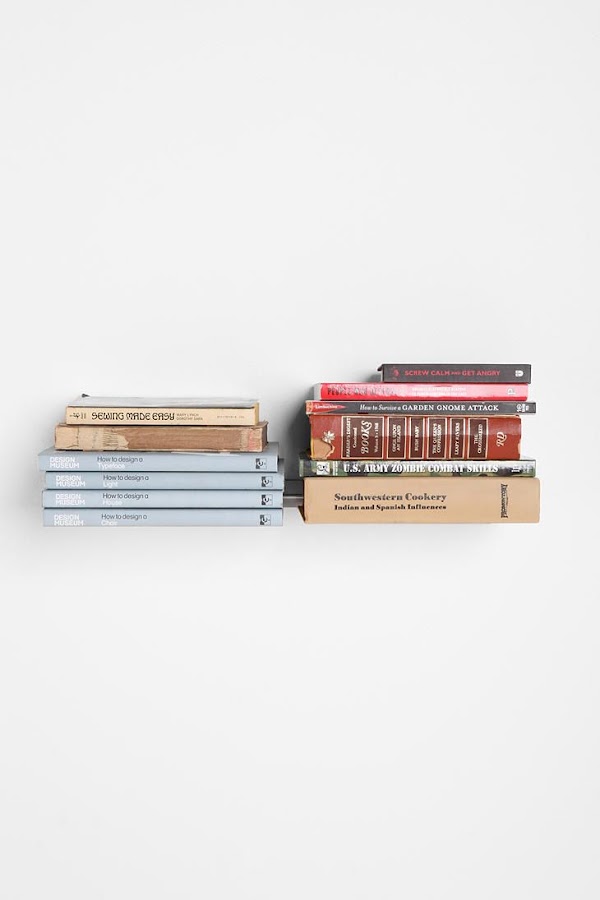 Nosotros hemos optado por la primera opción porque algunos de nosotros no tenemos sitio en casa y tenemos que apañarnos cómo sea. ¿Y si el propio libro se convierte en estantería? Hemos descubierto a Conceal, una estantería invisible, de la firma Umbra. Además de práctica nos gusta la forma en que los libros van vistiendo la pared y adquiriendo una fuerza y carácter muy personal. Por tan sólo 15 euros tienes una estantería, donde apilar toda una vida cultural y de ocio y además una pared versátil, dinámica y que irá creciendo y llenándose de historias nuevas con el paso del tiempo. Seguro seguro que no pasa desapercibida para tus invitados, ¿no crees?