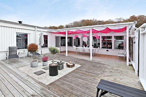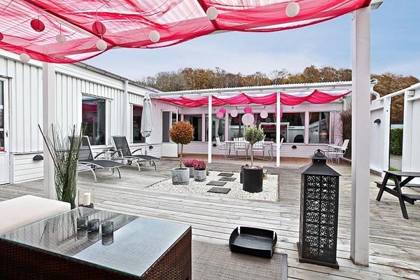El toque de los ligeros toldos y los farolillos en rosas consiguen un efecto precioso.