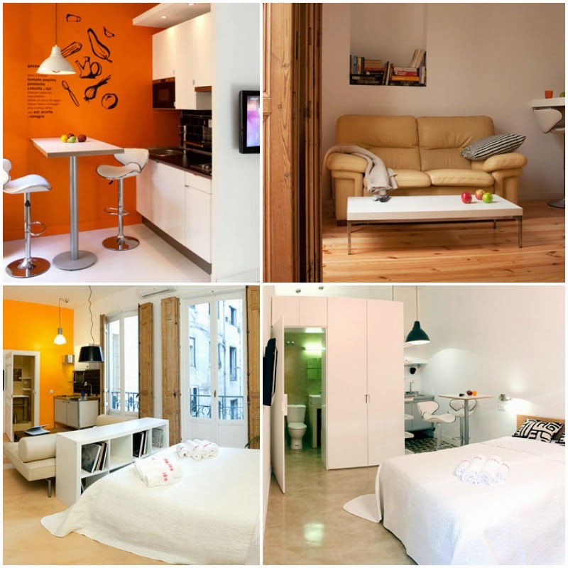 Hay disponibles estudios (las imágenes de arriba) y apartamentos de 1 y 2 dormitorios, con todas las comodidades...y no, no me han pagado, para que les promocione, pero me parece muy reseñable la labor de actualización de este anterior hostal para crear un moderno complejo de apartamentos en pleno centro de Madrid.