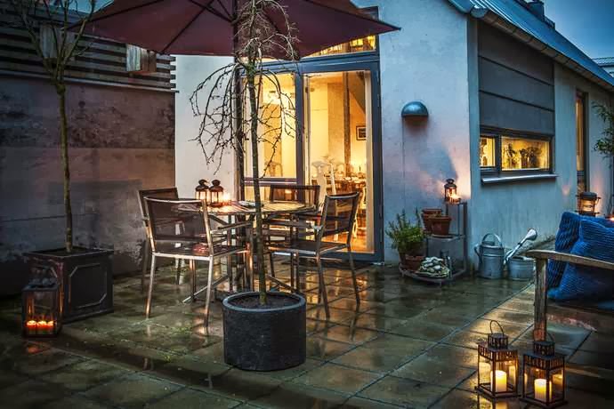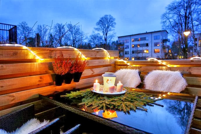 Pués sí ... ¿Quien dijo frio? Porque puede que en tu terraza haga frio, pero si la vistes con pieles, mantas, farolillos con velas -parece mentira pero sientes algo cercano a la calidez al observarlas -, y una tenue iluminación, el frio desaparece para dar paso a una sensación placentera... disfrutar, incluso en días gélidos, de la libertad que siempre se siente al aire libre, respirar el aroma del invierno, embeberte de sensaciones únicas, cuando todo el mundo está recogido en casa... y tú contra toda lógica estás sintiendo en tu piel el placer de sentirte viv@ ... ¿No es sensacional sentir algo así???