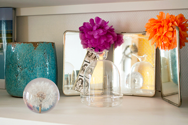 En el último mercadillo al que acudimos, tuvimos de vecina de puesto a una señora encantadora que vendía unas hermosas flores de telas confeccionadas por ella misma. Eran flores de un tamaño generoso, para llevar puestas: en un lateral del vestido, en el bolso, como tocado, en el cuello con unos collares de perlas que allí mismo te podías comprar... Las dos nos quedamos prendadas de ellas, pero coincidíamos en nuestra incapacidad para colocarnos una. Es una simple cuestión de estilo, y el nuestro, más bien minimalista a la hora de vestir, nos haría sentir que la flor nos llevaba a nosotras, en vez de nosotras a ella... Sin embargo, nos quitábamos la palabra de la boca evocando lugares de nuestro hogar donde colocaríamos esa misma flor: en una lámpara, en un busto, junto a la cama...
