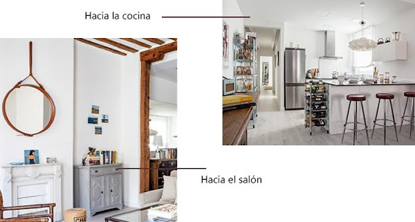 Una vez identificados los detalles (en este caso la arquitectura y elementos inamovibles como puertas y ventanas; en tu caso pueden ser los muebles que ya tienes) llega el momento de decidir lo que quieres conseguir. Mantener el estilo inicial como principal o utilizarlo como fondo del nuevo estilo que quieras introducir.