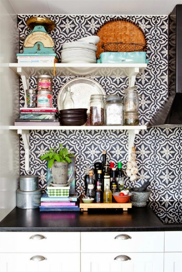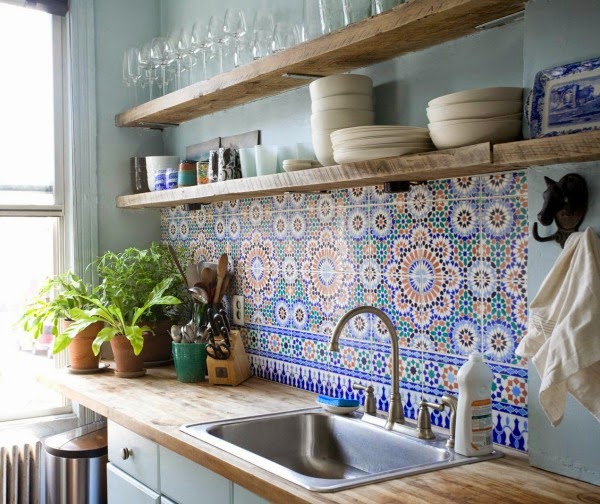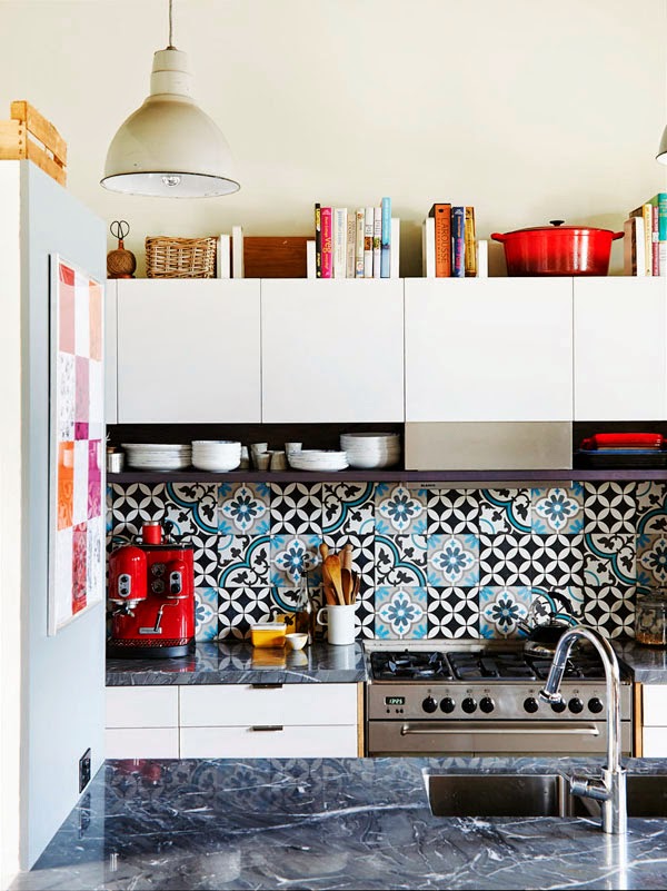 Cuando rehabilitamos la casa, decidimos pintar toda la cocina, nada de azulejos!! pero con el paso de los días, el flechazo de las baldosas hidráulicas va en auge, es por ello que ahora nos planteamos poner el frente donde está la campana de éstas baldosas. Y aprovechando éstos días que la campana está en el "taller", dan más juego todavía para ese planteamiento. Y es que con imágenes así ¿quién se resiste?