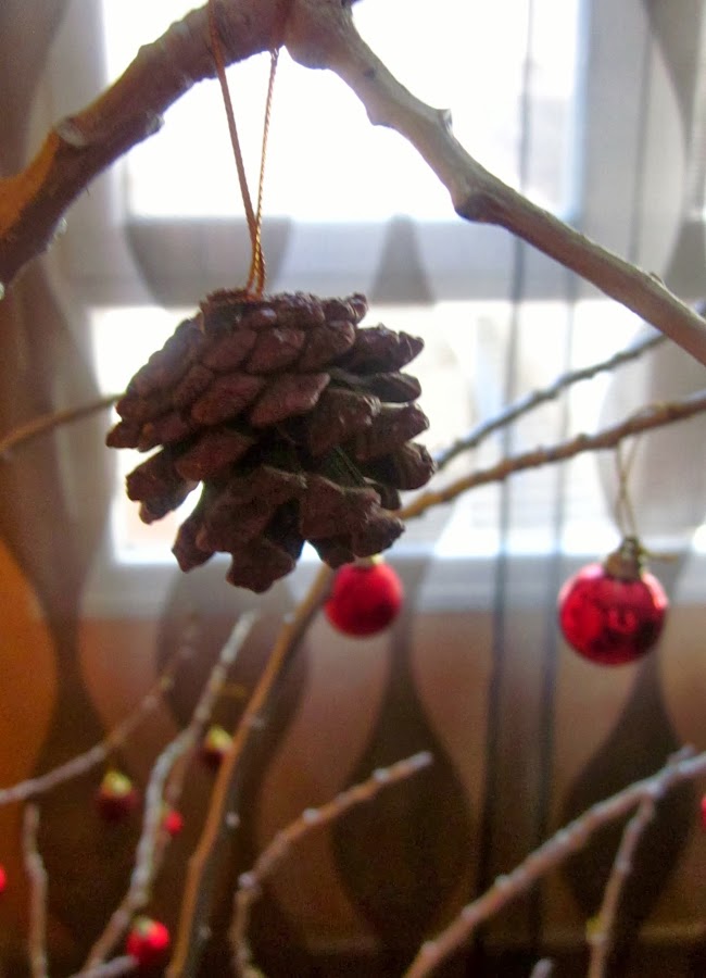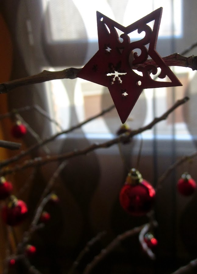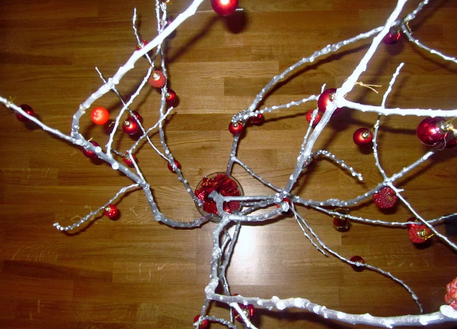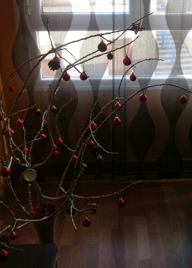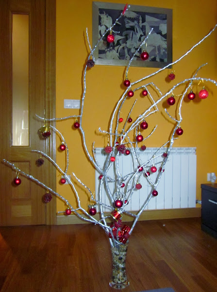Se trata de un árbol de Navidad hecho con una/s rama/s seca/s de un árbol.