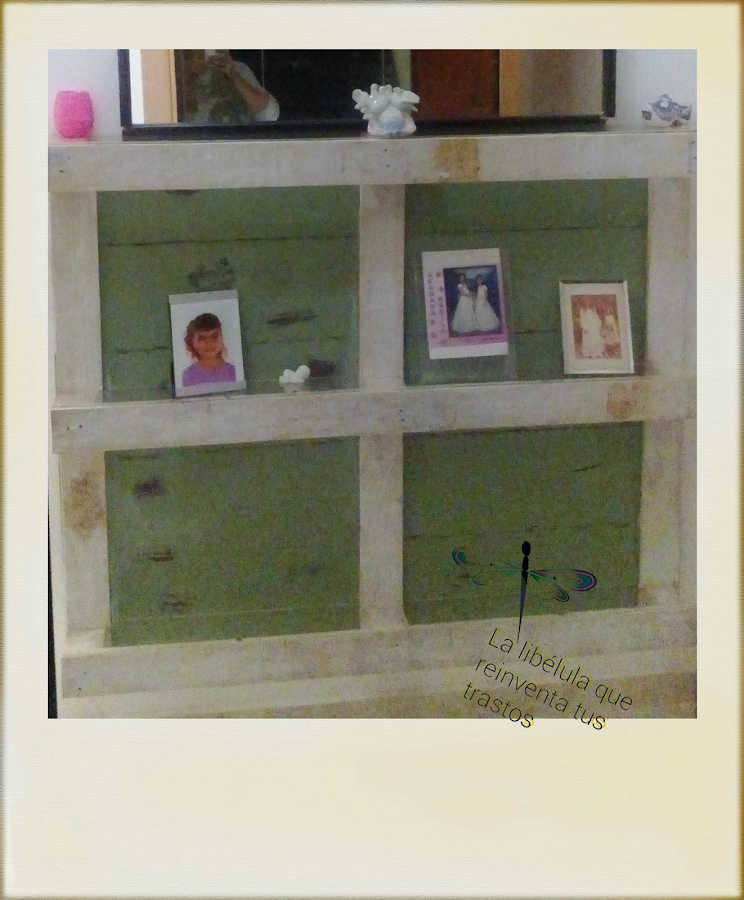 Y es que mi mami hacía tiempo que venía pidiéndome algún mueble original para su recicibor, y casi me desmayo cuando le propuso hacerlo de un palet y me dijo que sí, pero si ella es mas clásica que un camafeo, jeje!! A mi padre no le hizo mucha gracia, pero en decoración manda mi madre ;).