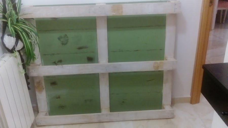 Y a la madera que hace de marco del palet, le pasé una buena mano de cera blanca.