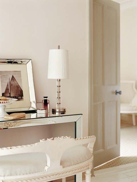 En los dos siguientes ejemplos juegan también un papel especial los detalles de la pared. En el primer caso una bonita moldura blanca a media altura.