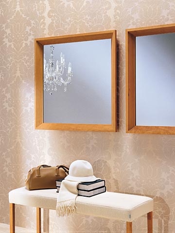 La misma idea básica de espejo y asiento, dos elementos casi imprescindibles en un recibidor. La ultima mirada antes de salir y un asiento para cambiarnos el calzado al llegar.