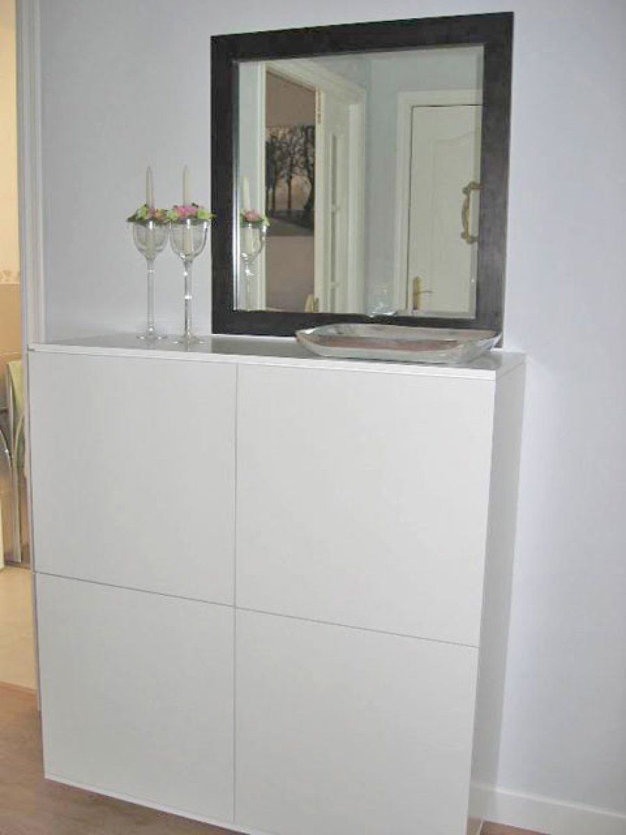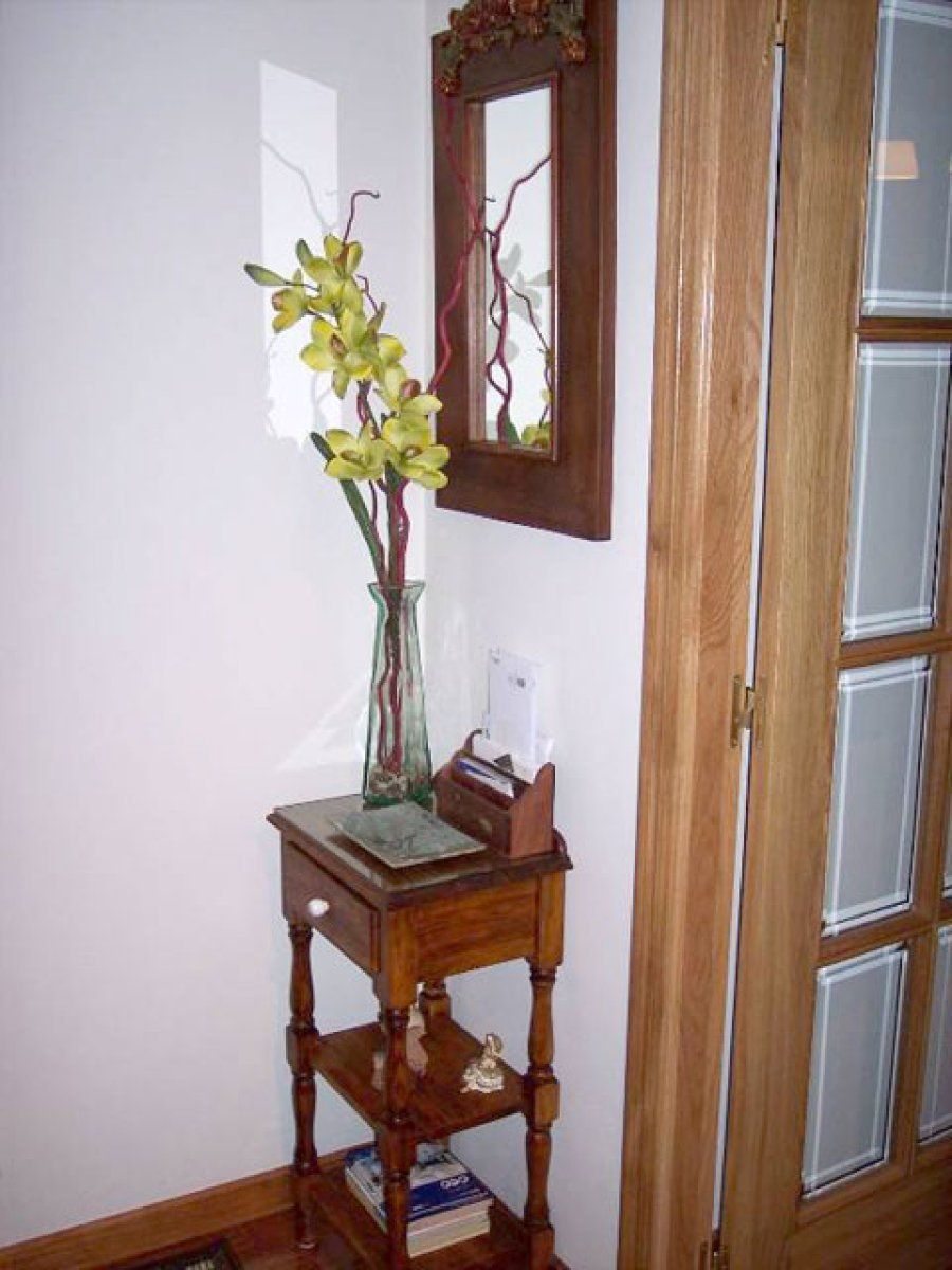 La existencia de una base de apoyo es indispensable, sobre todo para dejar el correo y las llaves. Si la pared es generosa pero carece de fondo, lo mejor es colocar un aparador ligero, de sobre estrecho y sin cajones, como el que ha elegido Araia en madera. Manolera se decidió por un mueble parecido, pero prefirió el color blanco