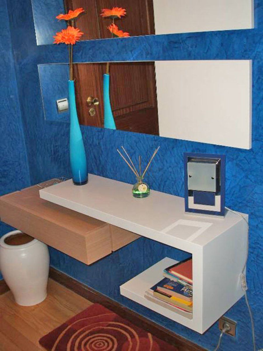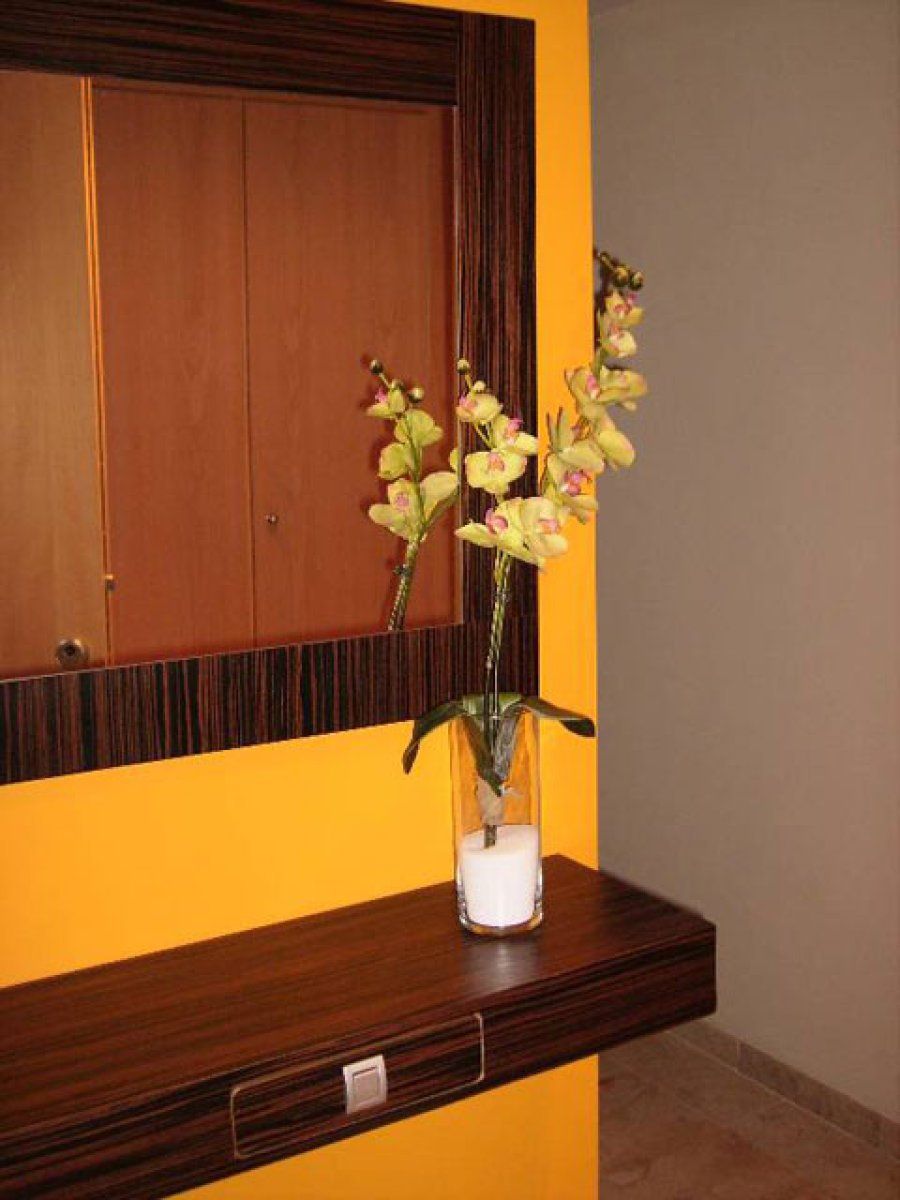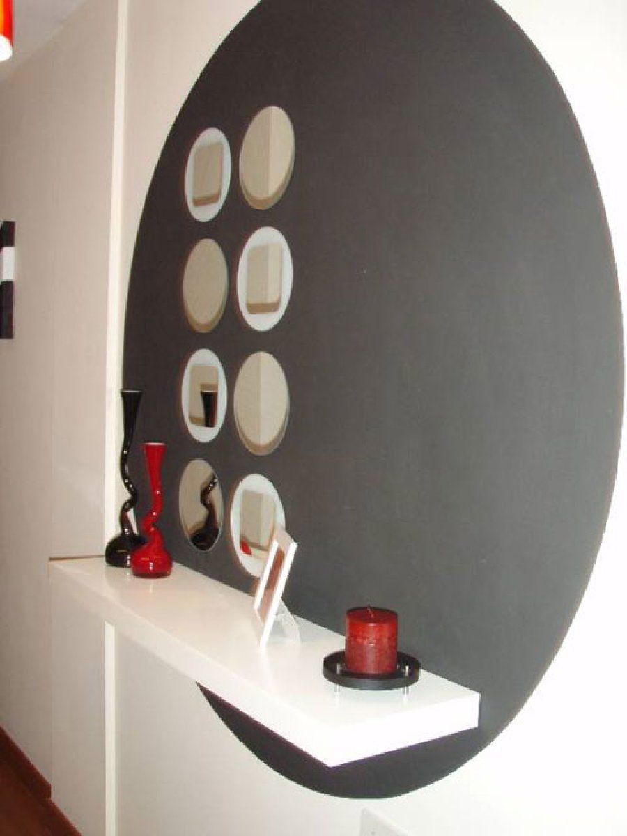 Una repisa triste y aislada gana una presencia tremenda si nos servimos de nuestro mejor aliado: nuestra imaginación. ¿Qué tal un vinilo de motivos florales como el que ha colocado Mirisnow? Otra composición estupenda es la del recibidor pop de Naranja, que presenta un estante sobre un círculo con espejos empotrados.