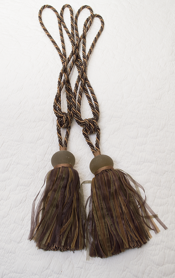 Borlas cortina : ( R.026) Descripción: pareja borlas para las cortinas en tono marrón, beige y verde.